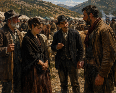 Vicino a noi si muoveva il sensale. Di bestiame, ufficialmente. Di tutto il resto, in realtà. Era uno di quelli che sapeva ogni cosa: chi aveva debiti, chi cercava una moglie, chi aveva una figlia "rimasta". Passava da un gruppo all'altro, parlava piano, indicava senza farsi vedere.